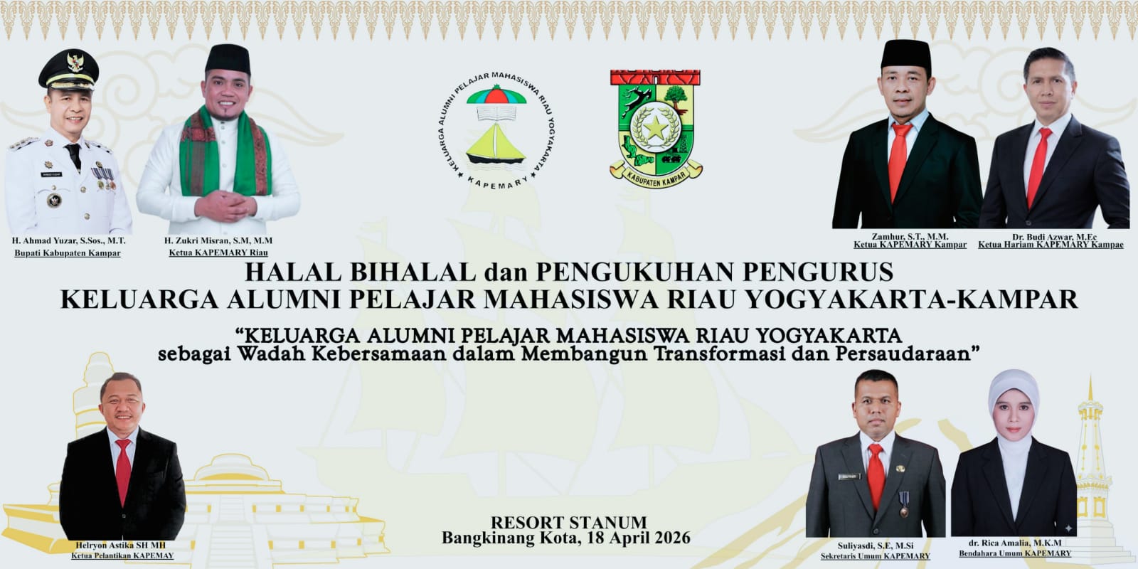 Sesuai jadwal acara halal bihalal sekaligus pengukuhan pengurus Kapemary Kampar akan dilaksanakan pada hari Sabtu siang (18/4/2026).