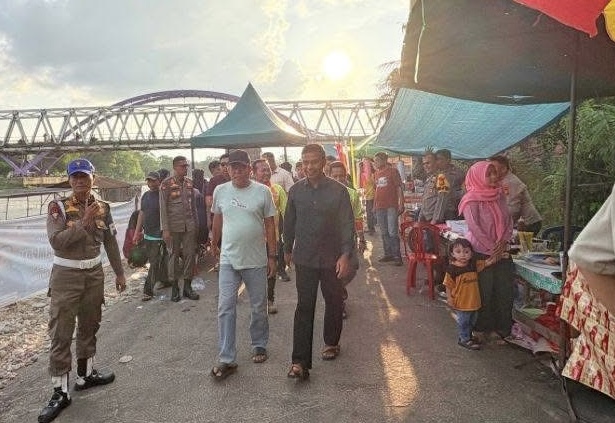 Antusiasme warga terlihat begitu tinggi, dengan sorak sorai yang menggema di sepanjang tepian sungai saat para peserta berlomba menunjukkan kemampuan terbaiknya dalam mengayuh sampan.