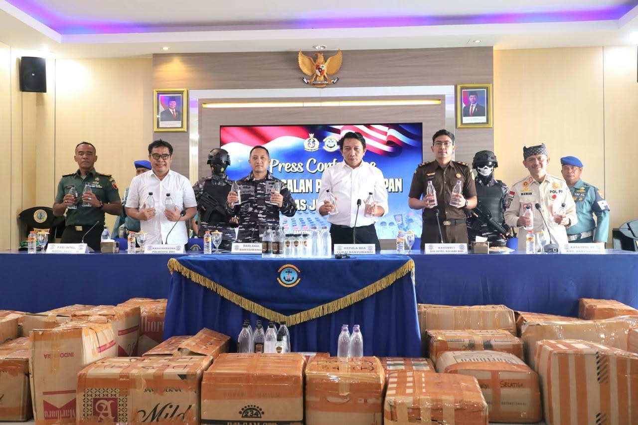 Komandan Lanal Banyuwangi Letkol Laut (P) Puji Santoso, M.Sc. di hadapan awak media pada konferensi pers yang digelar di Mako Lanal Banyuwangi, Senin (28/7) menyampaikan bahwa berdasarkan keterangan awal minuman keras tersebut akan didistribusikan ke beberapa wilayah di Pulau Jawa, antara lain Pekalongan, Karawang Timur, Cikoko, dan Bogor.