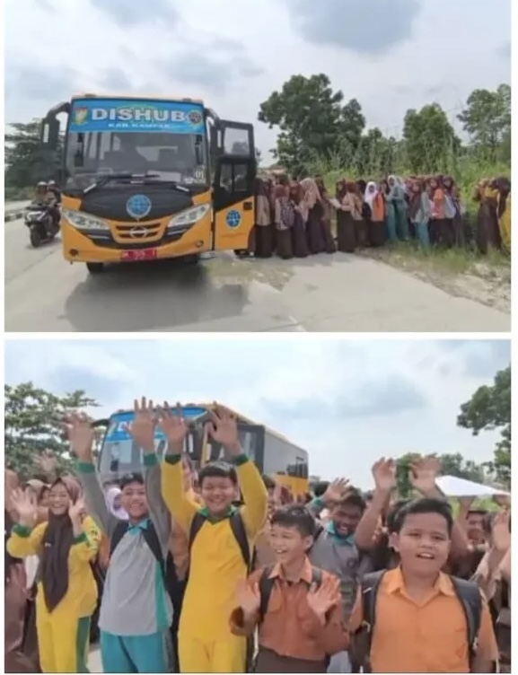 “Kami mengucapkan terima kasih sebesar-besarnya kepada Bapak Bupati Kampar H. Ahmad Yuzar, S.Sos., M.T. dan Ibu Wakil Bupati Dr. Hj. Misharti, S.Ag., M.Si. atas fasilitas angkutan sekolah gratis ini. Dengan pelayanan ini, perjalanan kami menuju sekolah menjadi lebih nyaman, begitu juga saat pulang ke rumah,” ujar perwakilan siswa.
